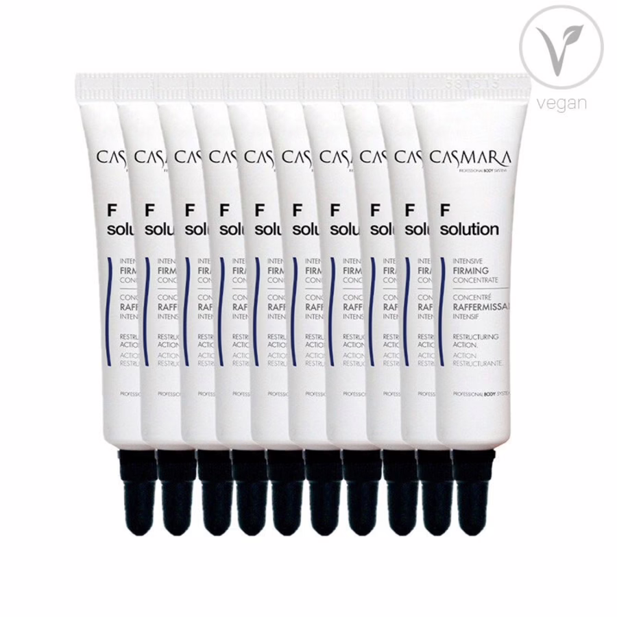 De Casmara BodyArt F Solution verstevigende behandeling is speciaal ontwikkeld voor intensieve huidverstrakking en levert ongelooflijke resultaten op het gebied van body shaping. De veganistische behandeling is perfect te gebruiken in combinatie met apparaten, dringt diep door in het weefsel en verhoogt de stevigheid en elasticiteit. Het verstevigende concentraat zorgt zo voor een goede cohesie tussen de lederhuid en de opperhuid, wat resulteert in een gladdere huidtextuur. De huidvezels worden versterkt - voor een diepe en langdurige versteviging!