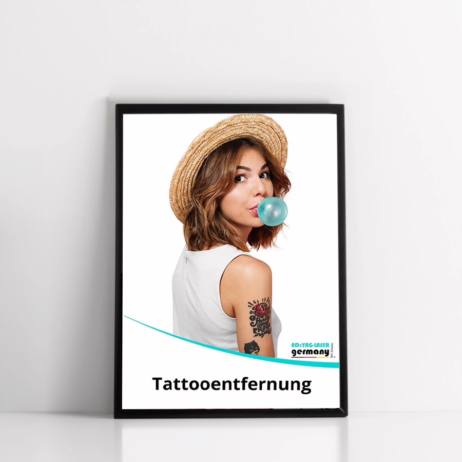 Gebruik daarnaast de Tattoo verwijderen reclameposter motief A om de aandacht te vestigen op je brede aanbod van behandelingen. Zo kunnen klanten je op eigen initiatief benaderen. In de etalage van de winkel of in een klantenstopper op straat kun je ook inloopklanten bereiken en nieuwe bestaande klanten aantrekken.
