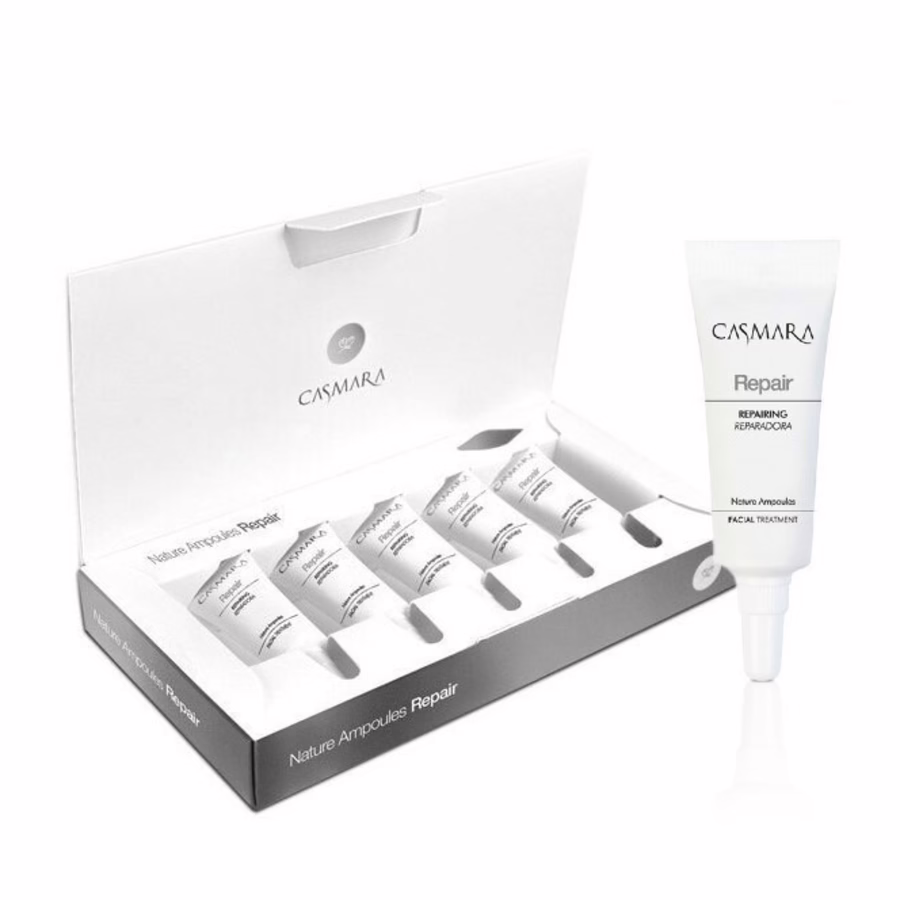 Professionele verzorgingsproducten voor je studio! Diepgaand effectief huidherstel met de Ampoule Repair van Casmara! De zeer effectieve power ampullen op basis van natuurlijke ingrediënten zijn perfect voor een uitgebreide schoonheidsbehandeling. De veganistische combinatie van actieve ingrediënten stimuleert niet alleen de celvernieuwing, maar kalmeert en verbetert ook de huidreconstructie na bijvoorbeeld een peelingbehandeling. Om het volledige potentieel van de actieve ingrediënten te realiseren, kan de ampul van 4 ml worden toegediend met een cosmetisch apparaat en zelfs effectief werken in de diepere lagen van de huid.