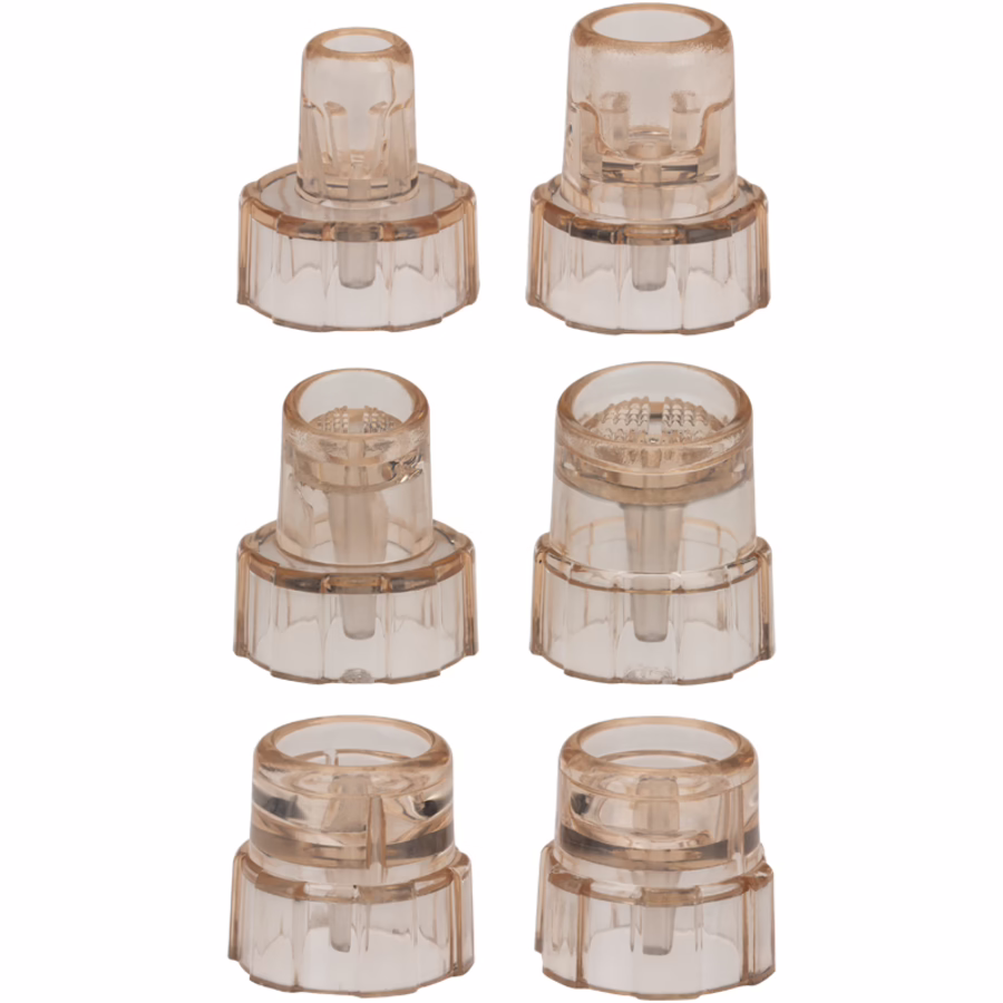 Met de Aqua Cleansing Crystal opzetstukken voor het SkinTechBeauty Aqua-Peeling apparaat set van 6, ben je perfect uitgerust. Het is compatibel met het Aqua Peeling apparaat van SkinTechBeauty en biedt een breed scala aan toepassingsmogelijkheden. Voor elk deel van het gezicht en verschillende huidproblemen is het juiste opzetstuk beschikbaar. De bredere opzetstukken zijn ideaal voor gebruik op grotere delen van het lichaam, zoals het decolleté, de hals en de rug. De kleinere opzetstukken zijn vooral effectief op kleinere gebieden, zoals het gebied rond de neusvleugels en de mond. Ze zijn ook gemakkelijk schoon te maken en te vervangen.