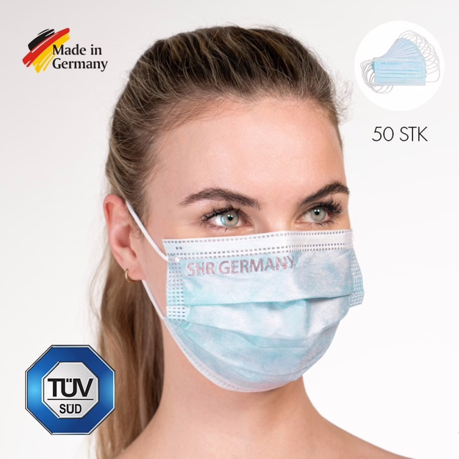 De SHR Germany maskers blauw voldoen aan de hoogste kwaliteitsnormen, zijn geproduceerd door speciale machines, grondig gesteriliseerd en verpakt. Ze zijn ook ideaal voor medische faciliteiten.