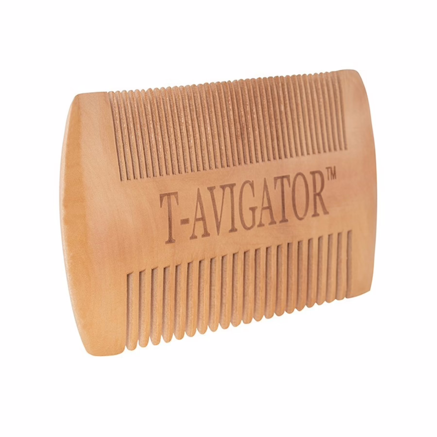 De baardkam van T-Avigator heeft twee tandbreedtes - de breder geplaatste tanden zijn geschikt voor vollere baarden en de dichtere tanden voor minder pluizig haar. Het hout behoudt de natuurlijke haarstructuur zonder deze op te ruwen en ontklit de baard pijnloos in een handomdraai.