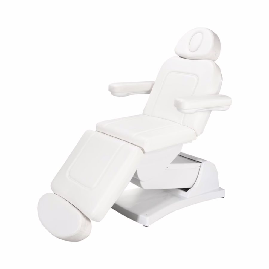 Deze witte schoonheid is niet alleen mooi om naar te kijken en makkelijk schoon te maken, maar ook uiterst praktisch. Het ligbed kan met één druk op de knop van de geïllustreerde afstandsbediening in bijna elke positie worden gezet. Zo kunt u uw klant perfect bereiken en uw eersteklas behandelingen uitvoeren.