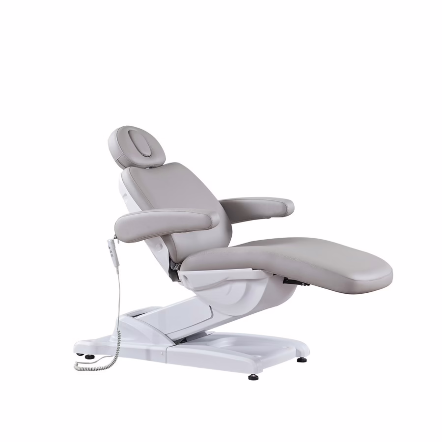 Dankzij 3 motoren kan de tafel in drie posities worden versteld en dus perfect worden aangepast aan de behoeften van jou en je klanten: Een simpele druk op de knop op de gemakkelijk te begrijpen afstandsbediening is alles wat nodig is om de tafel de hoogte, de neiging en de hoek van de rugleuning te laten aannemen die u nodig hebt om uw behandeling eenvoudig en moeiteloos uit te voeren.