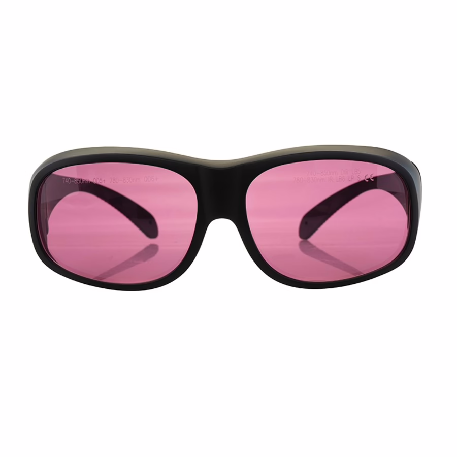 De zwarte veiligheidsbril met montuur 33 van SHR Germany filtert de golflengten van 740-850 nm. De randen van de bril bedekken het hele ooggebied en bieden uitgebreide bescherming zonder je zicht te belemmeren.