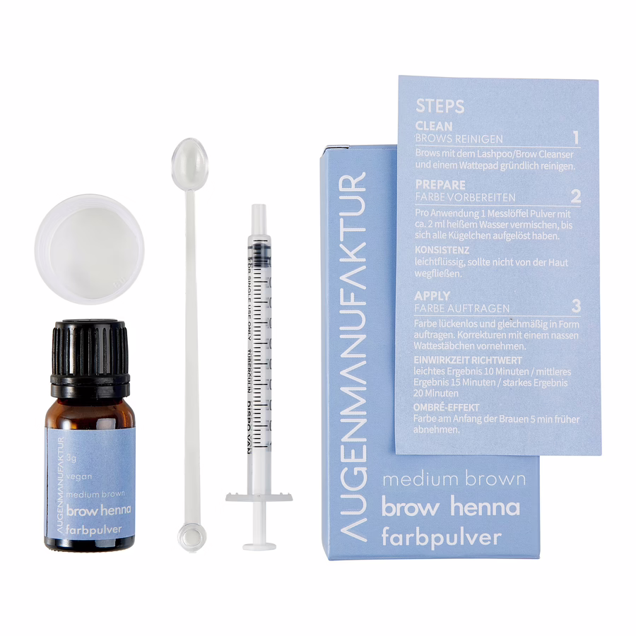 Brow henna is een kleurpoeder dat wordt gemengd met heet water om de wenkbrauwen te verven. 1 gram poeder is genoeg voor 4-5 toepassingen. Brow Henna kleurt niet alleen de wenkbrauwhaartjes, maar ook de huid. Geplukte wenkbrauwen zien er weer vol en weelderig uit en de vorm en contouren van de wenkbrauwen kunnen worden veranderd om een harmonieuze totaallook te creëren. Brow Henna kan ook worden gebruikt om een ombré effect te creëren. Het resultaat blijft tot veertien dagen op de huid zitten en het product is veganistisch, gemaakt van natuurlijke ingrediënten op waterbasis en bevat geen ammoniak. Het hele productieproces is dierproefvrij. Brow Henna biedt een betrouwbare grijsdekking. De anti-roodzweemformule zorgt voor gelijke, kleurveilige resultaten.
