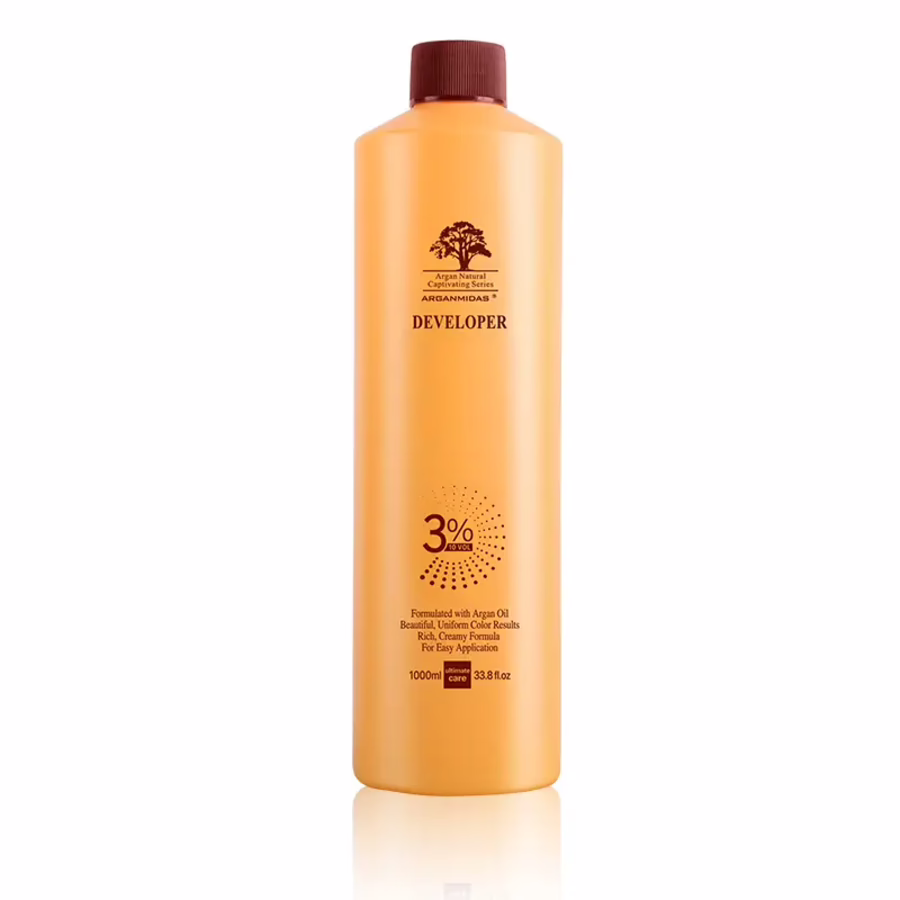 De Arganmidas 3% Developer is een hoogwaardige developer die speciaal is ontwikkeld voor gebruik met Arganmidas haarkleurmiddelen en lighteners. Met een concentratie van 3% (10 volumeprocent) zorgt het voor zachte maar effectieve kleuring en oplichting. Voor zowel kleur- als bleekprocessen: Met de Arganmidas 3% Developer behaal je stralende resultaten!