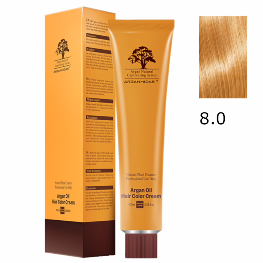 1x Arganmidas Moroccan Argan Oil Hair Color Cream Natural Series 8.0 / Creme-Haarfarbe Light Blonde 100 ml