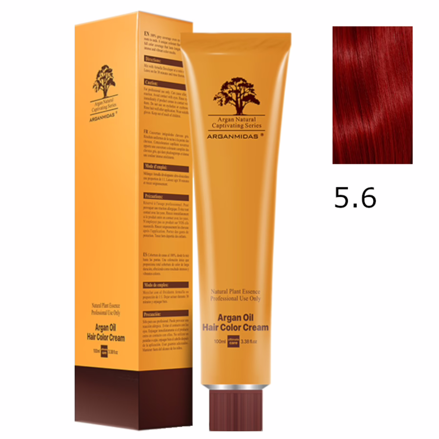 1x Arganmidas Moroccan Argan Oil Hair Color Cream 5.6 / Haarfarbe Light Red Brown 100 ml
