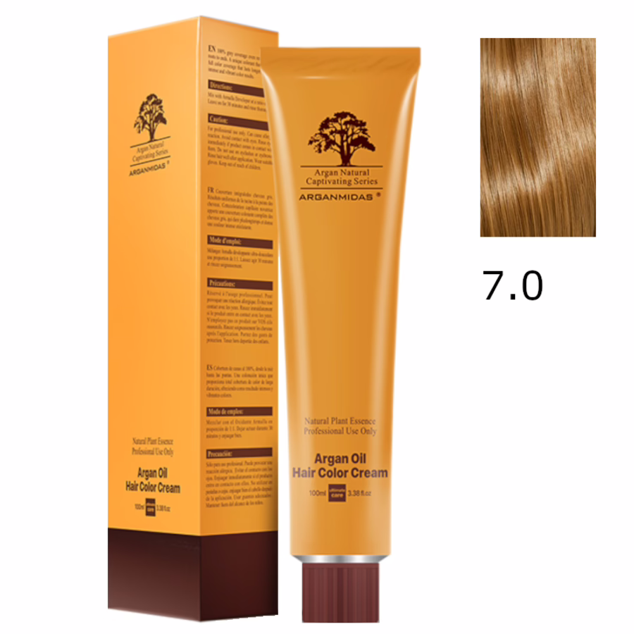 1x Arganmidas Moroccan Argan Oil Hair Color Cream 7.0 / Haarfarbe Medium Blonde 100 ml