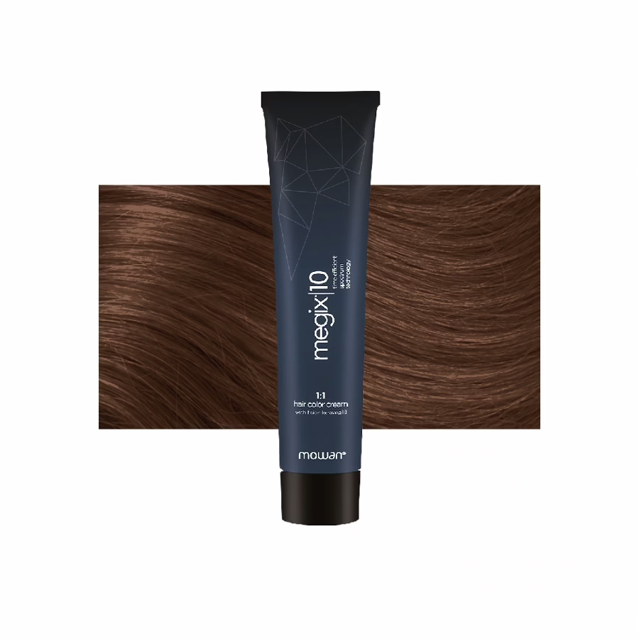 Mowan Megix10 haarkleuring 7.7 tovert een onweerstaanbare kastanjeblond tevoorschijn die inspireert met een spel van diepe, warme bruine facetten en medium blonde nuances.