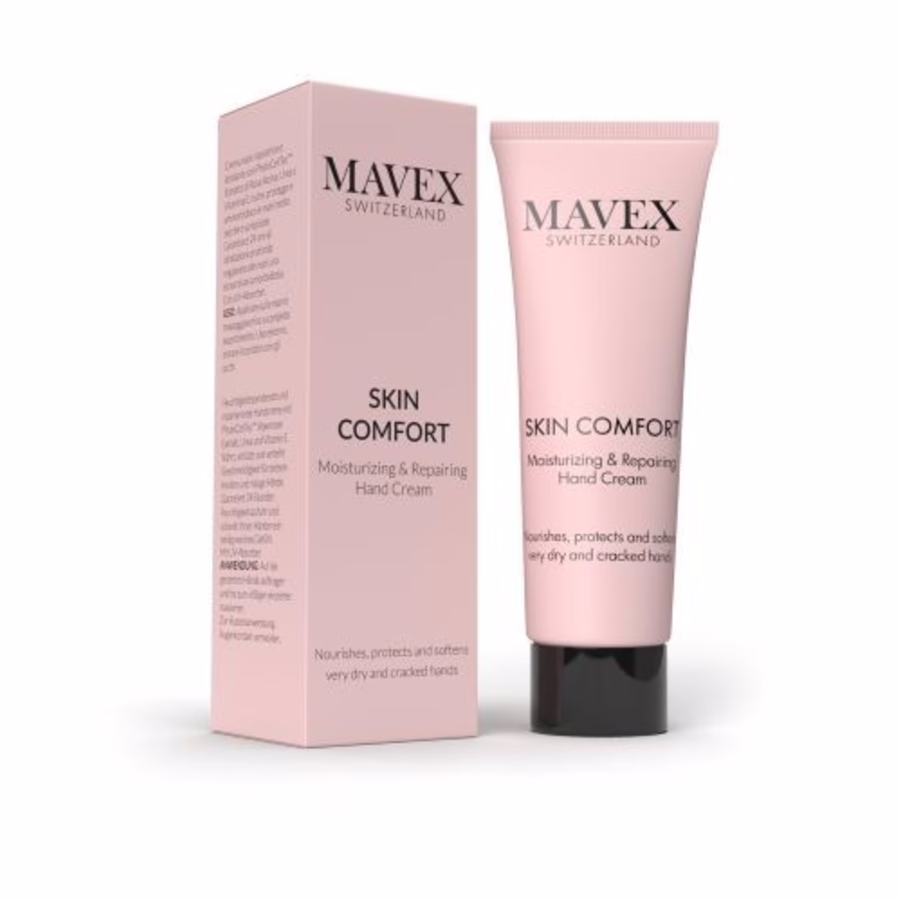 De Mavex Skin Comfort Moisturising & Repairing Hand Cream biedt allround verzorging voor droge, gebarsten handen: het voedt en beschermt de huid en maakt haar buitengewoon zijdezacht.