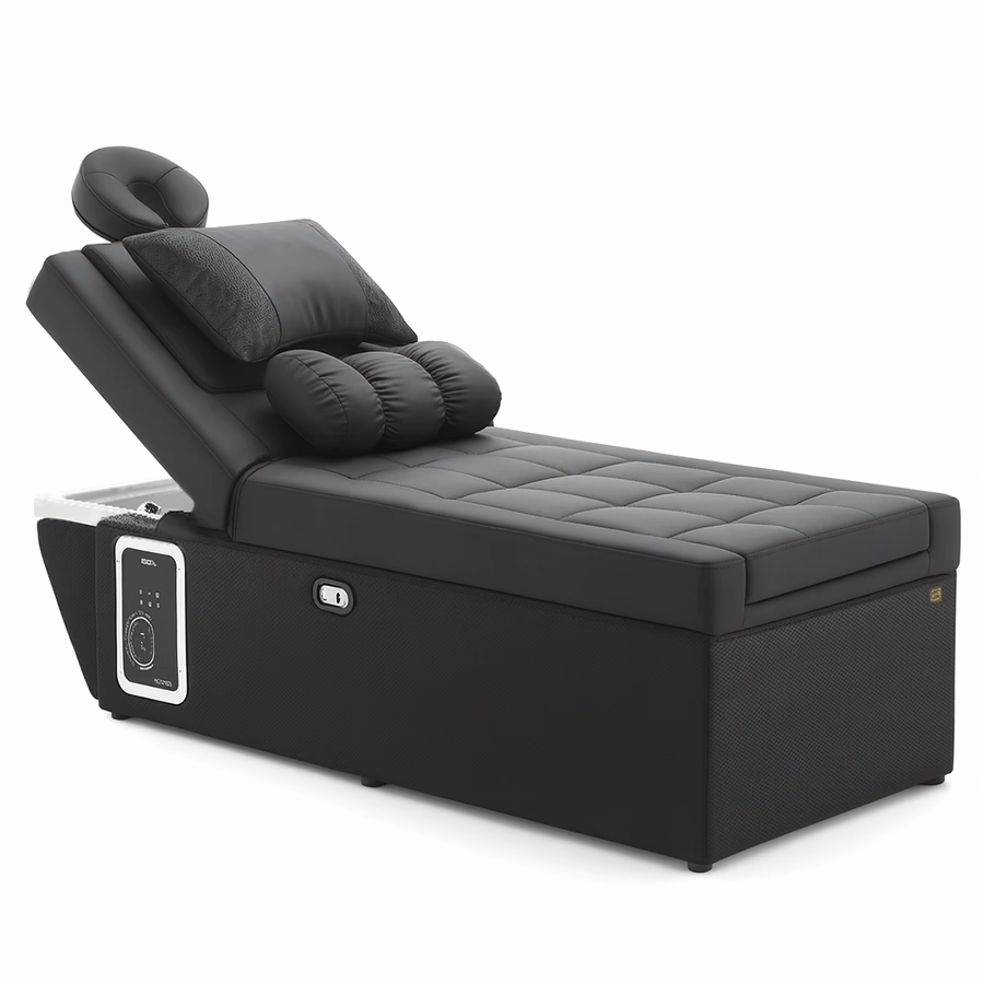 Dit professionele hoofdspa-systeem breidt uw aanbod uit, verbetert uw workflow en creëert een luxe behandelervaring die indruk maakt. Het zwarte kunstleer is gemakkelijk schoon te maken en zeer duurzaam. De moderne, strakke look past in alle saloninterieurs.