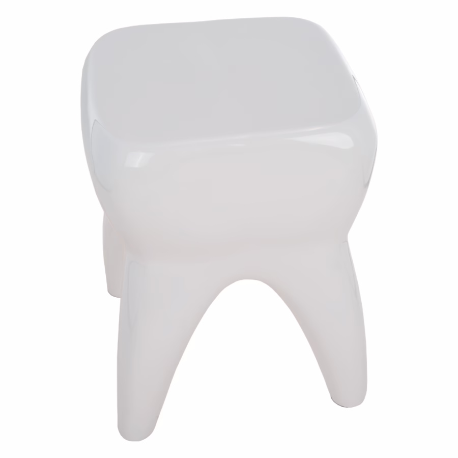 Een meubelstuk als dit springt meteen in het oog! De witte tandkruk van glasvezel is een humoristische toevoeging aan anders sobere werkomgevingen in de tandheelkundige sector. De decoratieve kies zal zowel kinderen als volwassenen bekoren.