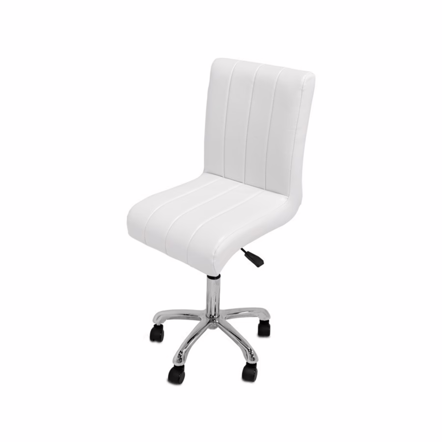 De licht gebogen rugleuning belooft een betrouwbare ondersteuning van de rug. De zithoogte van de draaistoel kan worden ingesteld met een hendel onder de zitting, de wielen zijn stil en zorgen ervoor dat je je snel en veilig kunt verplaatsen. De witte bekleding van de stoel ziet er niet alleen edele uit, maar is ook gemakkelijk schoon te maken.