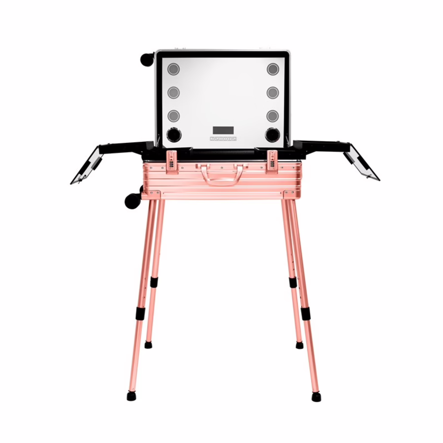 1x Oprolbare make-up koffer met spiegel roze