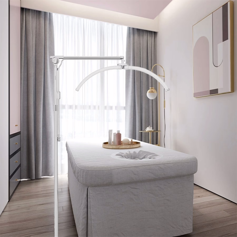 Deze werklamp is ideaal voor nagel-, tattoo- en schoonheidsstudio's en voor wimper- en make-upartiesten - met andere woorden, voor alle ruimtes waar een gelijkmatige, niet-verblindende verlichting en een onbelemmerd zicht op het werk of de klant cruciaal zijn. Dankzij de gebogen halve maanvorm zijn er geen storende schaduwen.