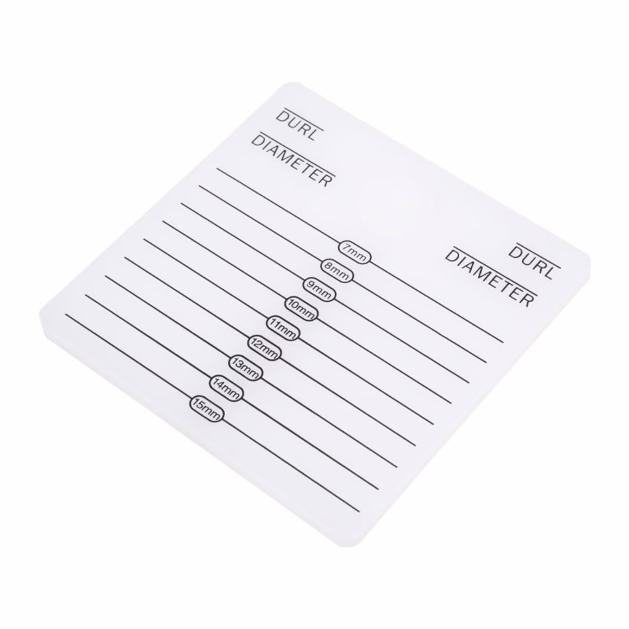 Hiermee kun je de wimperextensions overzichtelijk ordenen op lengte, krul en diameter.Het oppervlak van het palet is zeer glad, waardoor de plakstrips op de wimpers sterk blijven zitten en je elke wimper gemakkelijk kunt verwijderen zonder dat er iets wegglijdt. Het wimper palet is voorzien van lijnen en lengtes van 7-15 millimeter om het makkelijker voor je te maken om de lengtes te sorteren. Je kunt ook de krul en diameter van de wimpers linksboven en rechtsboven op het palet noteren. Zo heb je alle benodigde informatie bij elkaar en kun je in één oogopslag zien welke wimpercombinaties er voor jou beschikbaar zijn.