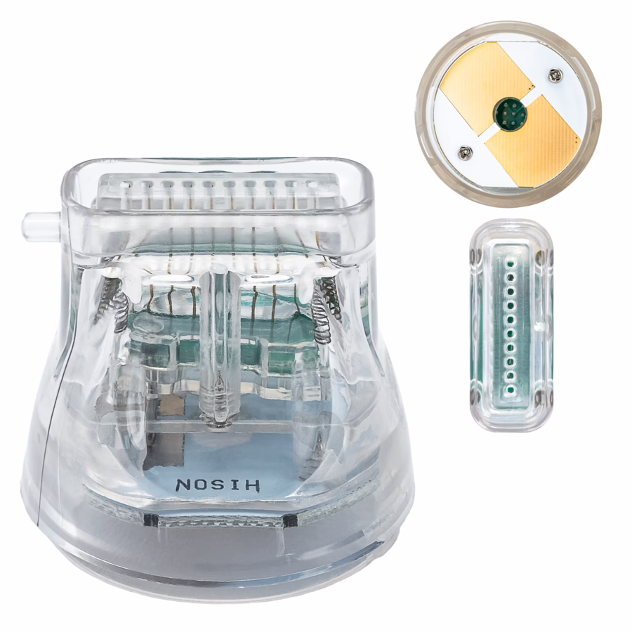 De naalden hebben een hoogwaardige gouden coating die voorkomt dat de radiofrequentie-energie in het omringende weefsel wordt verspreid. De RF wordt alleen afgegeven aan de naaldpunten, waardoor de behandeling zachter en effectiever is.