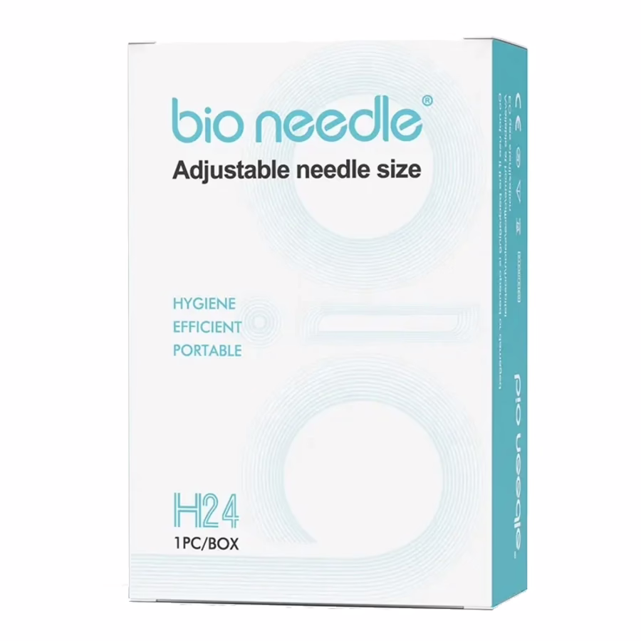 De applicatorkop heeft 24 titanium microneedles met een instelbare diepte van 0,25 tot 1,5 mm en kan dus perfect worden aangepast aan individuele huidvereisten. De ponsnaalden kunnen ook volledig worden ingetrokken, waardoor de bionaald HN24 veilig kan worden opgeborgen en een langere levensduur heeft.