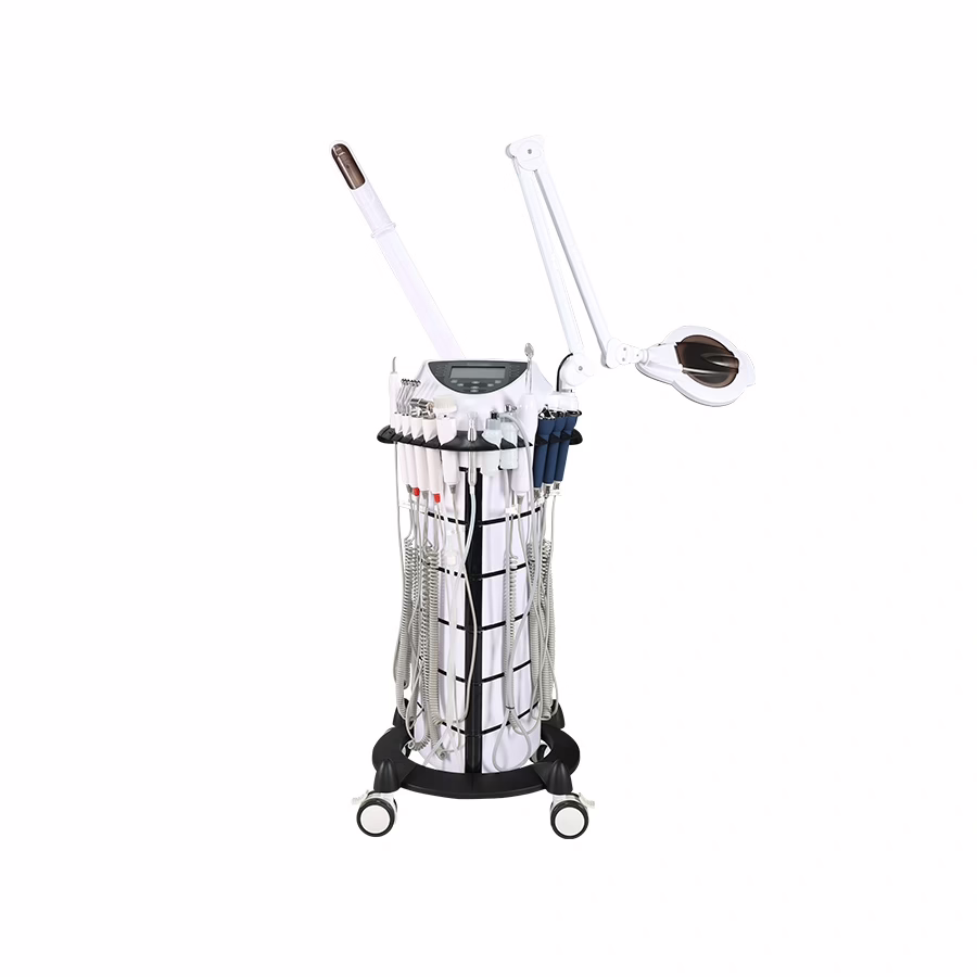 De high-frequency wand wordt voornamelijk gebruikt voor het behandelen van huidoneffenheden, maar ook voor anti-aging toepassingen. Het apparaat is uitgerust met vier glazen elektroden die voor verschillende gebieden kunnen worden gebruikt. Door deze elektroden wordt een lage stroomsterkte in de huid geleid, waardoor bacteriën worden verwijderd en de huid strakker wordt.Bij iontoforese wordt galvanische stroom gebruikt om de stofwisseling en bloedsomloop te stimuleren. Hierdoor kunnen fijne lijntjes worden opgevuld en kunnen verwennende cosmetische producten beter in het weefsel worden opgenomen.Met de iontophorese wordt de stofwisseling en de bloedsomloop gestimuleerd.Met het SHR Germany 9 in 1 multifunctionele apparaat model 1 kunt u de droom van eersteklas behandelingen op maat voor u en uw klanten waarmaken, zelfs in een kleine ruimte!