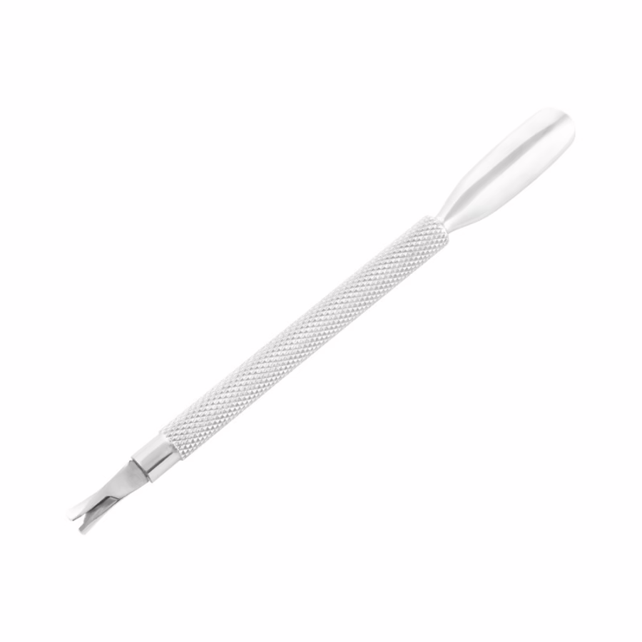 Dit manicure-instrument heeft twee uiteinden met verschillende functies.Eén uiteinde heeft een licht gebogen pusher met een afgeronde punt die zich vormt naar de natuurlijke curve van het nagelbed en de nagelriemen zachtjes terugduwt.