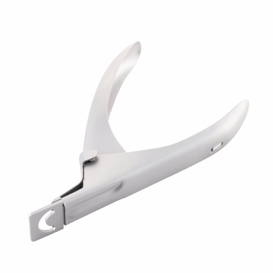 Deze moderne, zilveren tool heeft een voorgevormde snijkant die kunstnagels en tips met slechts één knip knipt. Het scherpe blad voorkomt dat de snijkant gaat rafelen. Op deze manier wordt het model beschermd en verliest het niet zijn grip.