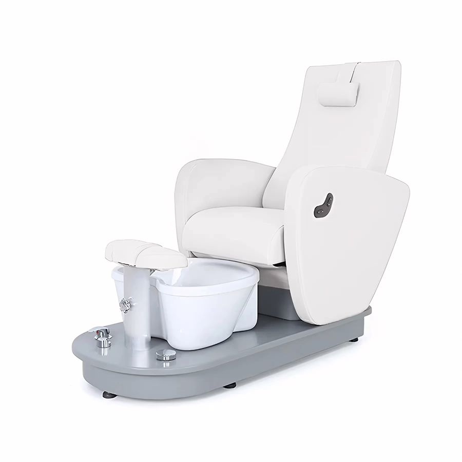De pedicurestoel wordt geleverd met een one-touch knoppenbalk waarmee je de 2 geïntegreerde motoren gemakkelijk kunt bedienen. Druk gewoon op de bijbehorende knop en de rugleuning en kanteling van de stoel bewegen naar wens.