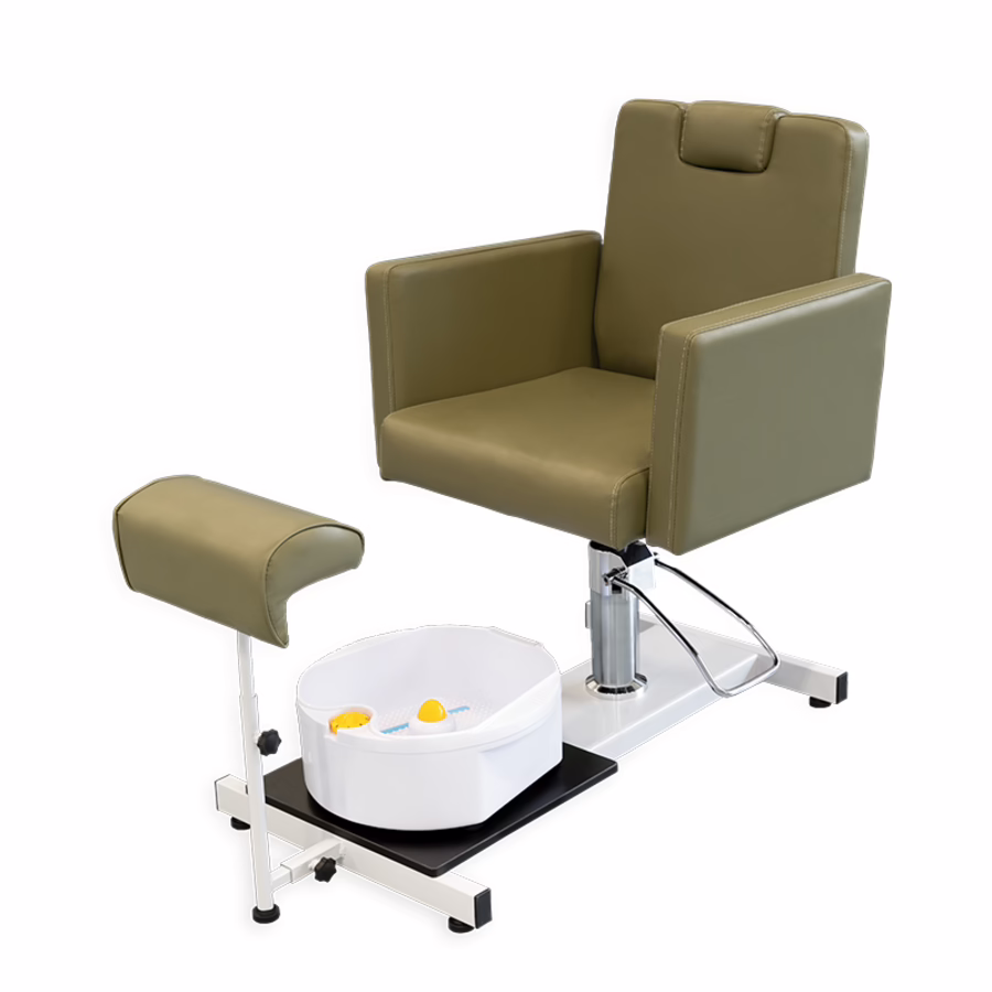 Een warm voetenbad en een rustgevende pedicure zijn voor velen een luxueus wellnesshoogtepunt. Laat je klanten plaatsnemen in deze comfortabele, groene pedicurestoel en bied ontspannende behandelingen die lichaam en geest verwennen.