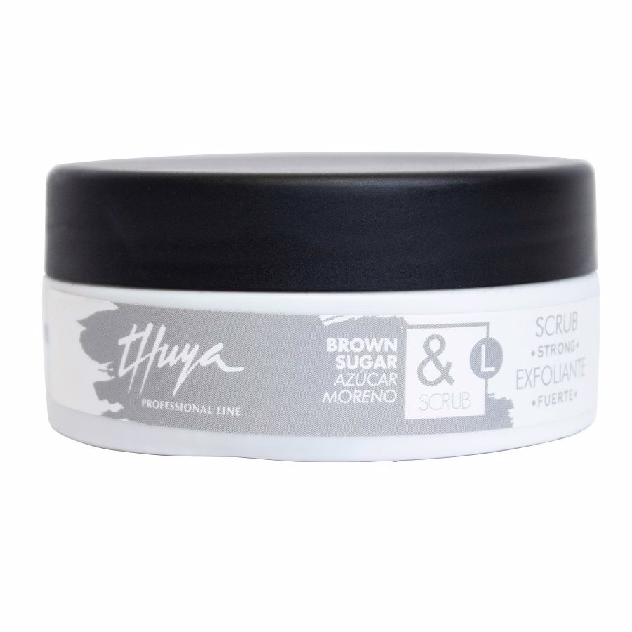 De Strong Scrub Bruine Suiker van het Spaanse merk Thuya is speciaal ontwikkeld voor manicure- en pedicurebehandelingen. Bruine suiker werkt als een mechanische scrub en verwijdert dode huidcellen. Tegelijkertijd biedt de scrub ook voldoende verzorging dankzij essentiële oliën. Munt, lavendel en cipres hebben een verzachtend en ontzwellend effect en geven vooral vermoeide voeten een weldadige pauze.