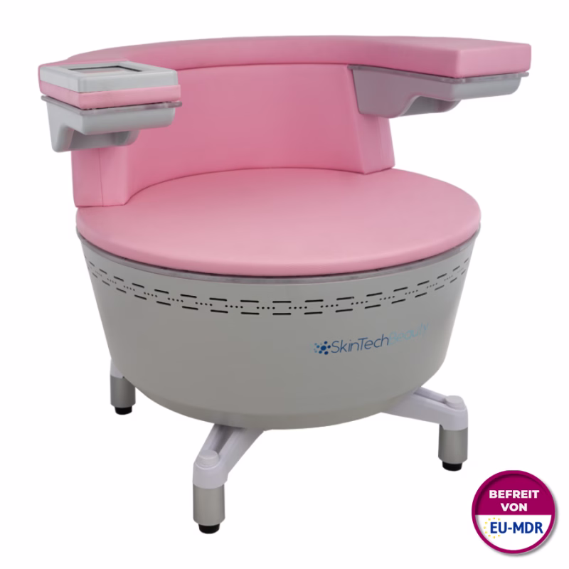 Zit neer, leun achterover en ontspan - trakteer uzelf op een pauze op de SkinTechBeauty EMS PelviChair XS Pro, die ondertussen uw bekkenbodem effectief versterkt.