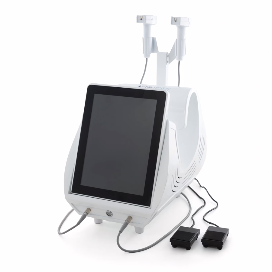 Dankzij twee verschillende handstukken kan de SkinTechBeauty Face&Body RF Microneedling M gebruikt worden om zowel het gezicht als het lichaam gericht te behandelen.