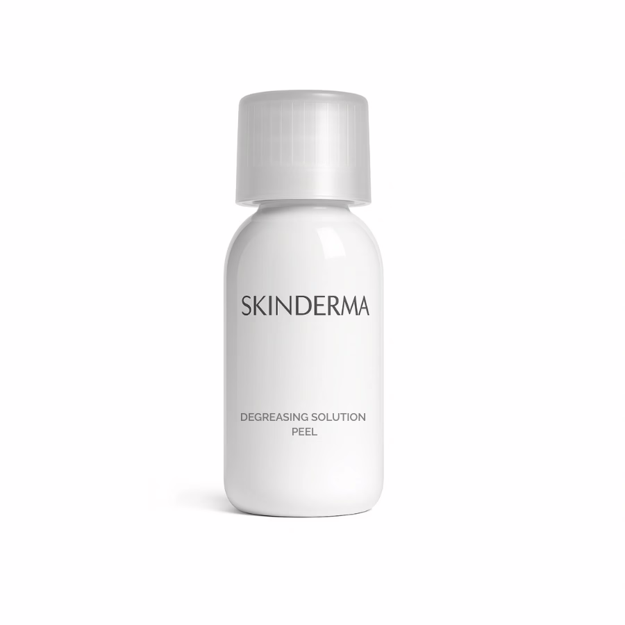 Skinderma Degreasing Solution Peel bevat gedenatureerde alcohol en aceton. Deze combinatie maakt het huidoppervlak tijdelijk vetvrij, verwijdert make-upresten en opent verstopte poriën. Het heeft ook een zacht desinfecterend effect en bestrijdt schadelijke bacteriën. Hierdoor kunnen de daaropvolgende vochtinbrengende ingrediënten beter in de huid dringen.