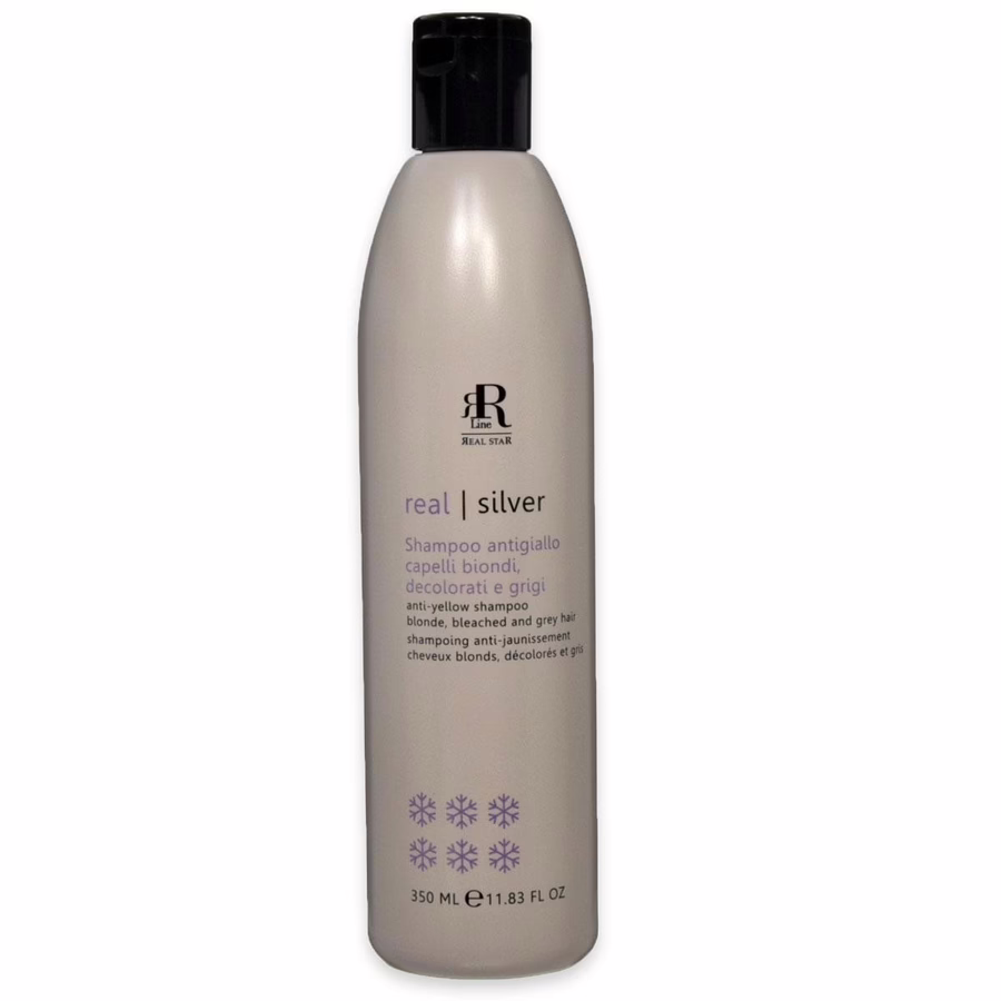Of je nu blond, gebleekt of grijs haar hebt, Real Star's Silver Star Shampoo bestrijdt en neutraliseert een gele kleurzweem met balancerende violette pigmenten en bosbessen- en druivenstamcelextract.