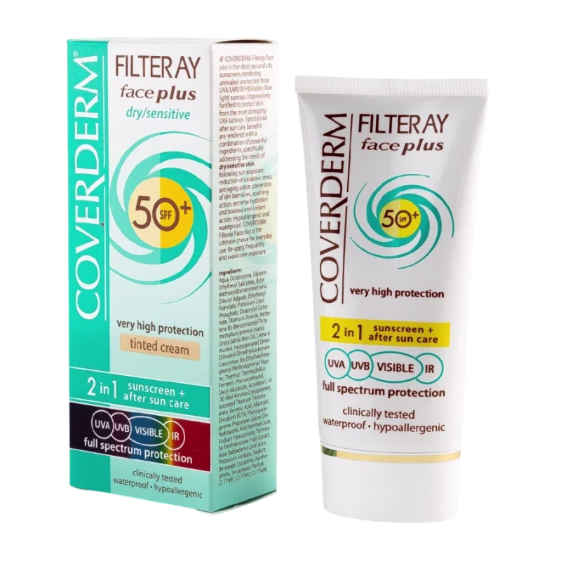 In de zomer verandert de behoefte van de huid. Vooral nu is een hoog niveau van zonbescherming essentieel. De door de zon belaste huid heeft ook een crème nodig die intensief kalmeert en hydrateert. Als je deze extra portie verzorging en bescherming niet aan je dagelijkse make-up wilt toevoegen, grijp dan gewoon naar Coverderm Filteray Face Plus Getint!