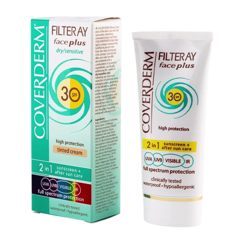 Coverderm Filteray Face Plus Dry Sensitive / Getinte 2in1 zonnecrème voor de droge, gevoelige huid Licht Beige SPF 30 50 ml