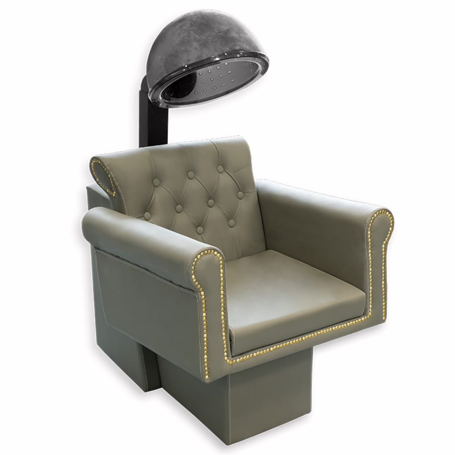 Elegante kappersstoel met krachtig grijs droogkapje - voor perfecte stylingresultaten!