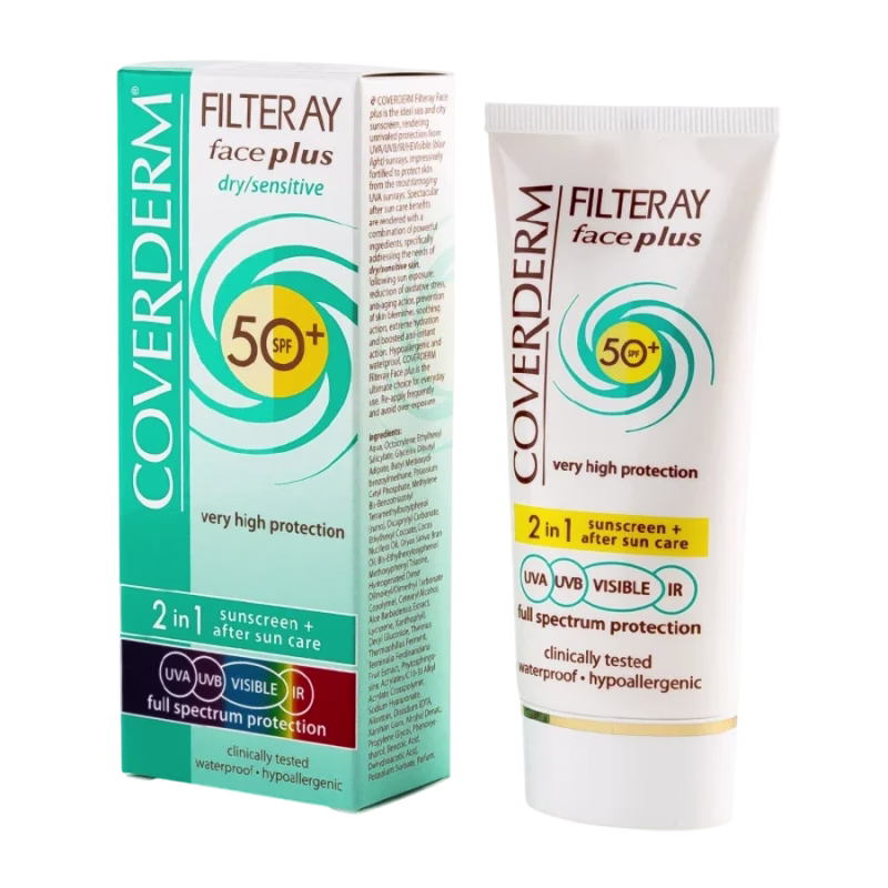 Coverderm Filteray Face Plus Droge Gevoelige Huid SPF 50+ / 2 in 1 zonnecrème voor de droge, gevoelige huid SPF 50+ 50 ml