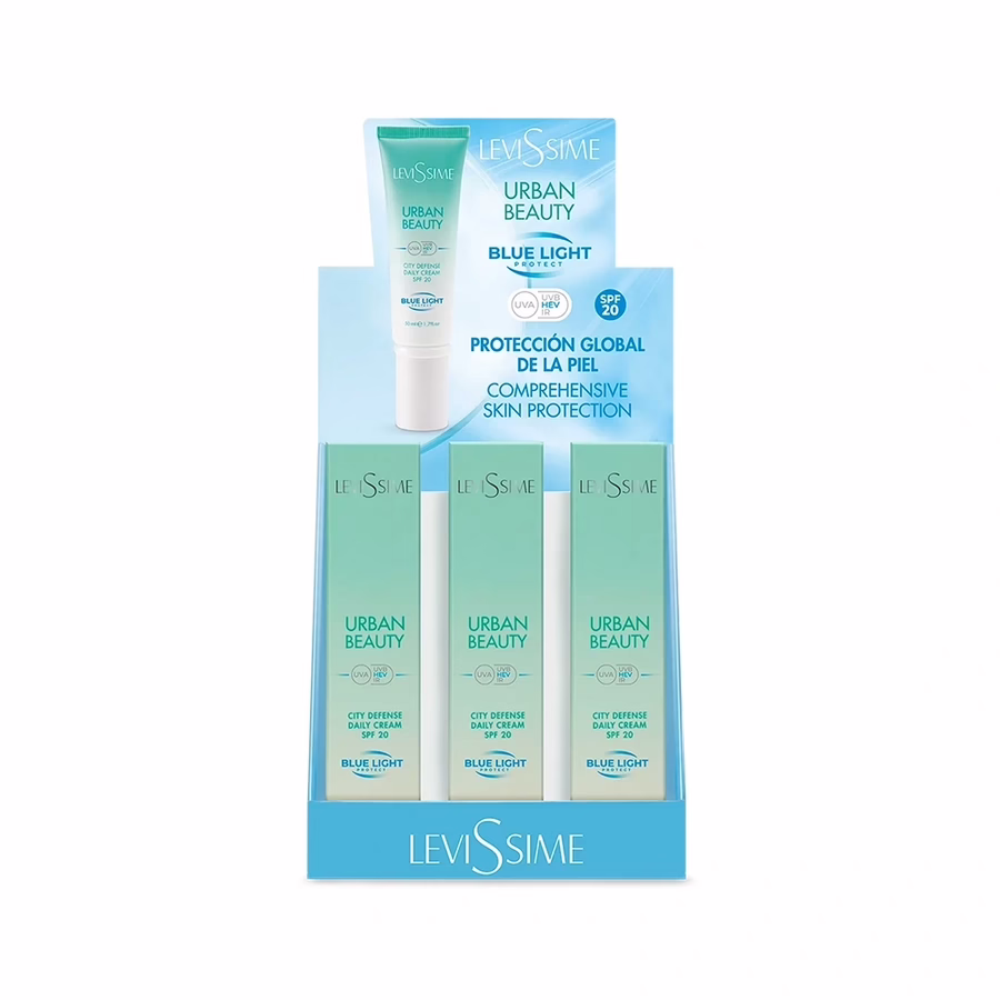 Help je huid in de strijd tegen schadelijke invloeden van buitenaf en lichtschade met de innovatieve LEVISSIME Urban Beauty City Defence dagcrème!