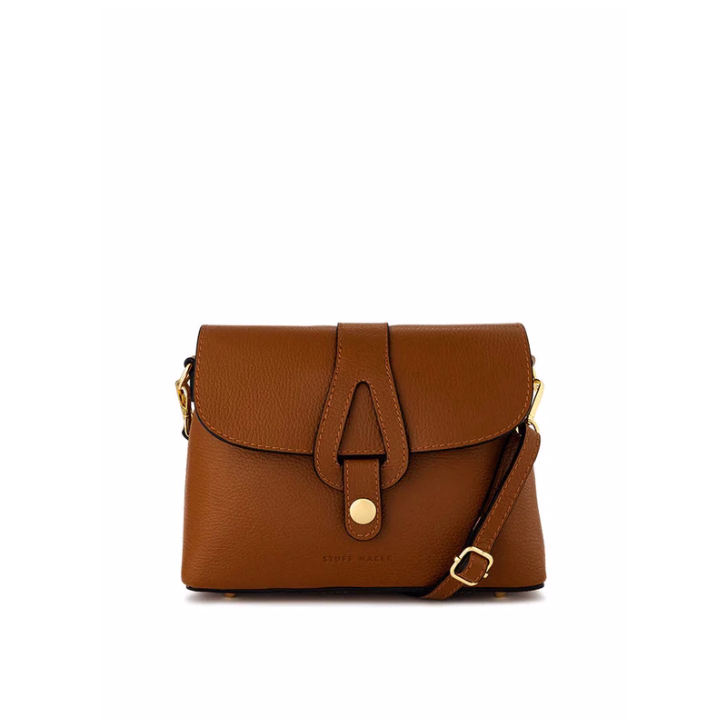 De "Lilly" kleine kleptas van STUFF MAKER is een meesterwerk van design. In de klassieke bruine kleur belichaamt hij een natuurlijke elegantie die perfect wordt geaccentueerd door het hoogwaardige, gestructureerde leer. Het middelpunt van het ontwerp is de opvallende goudkleurige klinksluiting op de klep, die de tas een luxueus en toch modern karakter geeft.