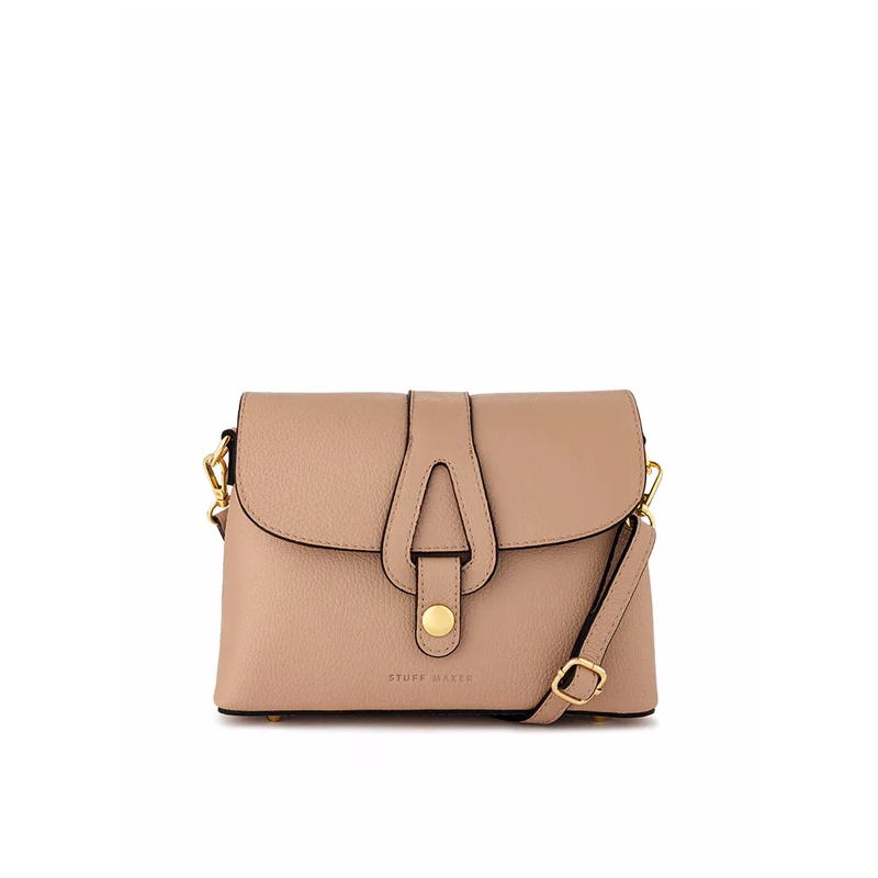 De "Lilly" kleine flaptas van STUFF MAKER is de perfecte keuze voor iedereen die houdt van subtiele kleuren en luxe details. In de elegante kleur taupe-beige straalt de tas een moderne rust uit die moeiteloos gecombineerd kan worden met elke outfit. Het hoogwaardige, gestructureerde leer geeft het model een geraffineerde uitstraling, terwijl de opvallende goudkleurige klinksluiting op de klep voor een glamoureuze afwerking zorgt.