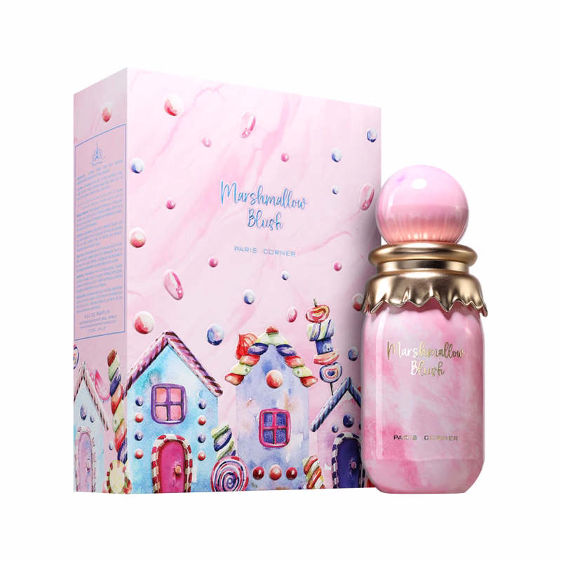 Marshmallow Blush van het parfumhuis Paris Corner is een eau de parfum van hoge kwaliteit met een intens gourmandkarakter. Het biedt een mix van marshmallows en bessendesserts.