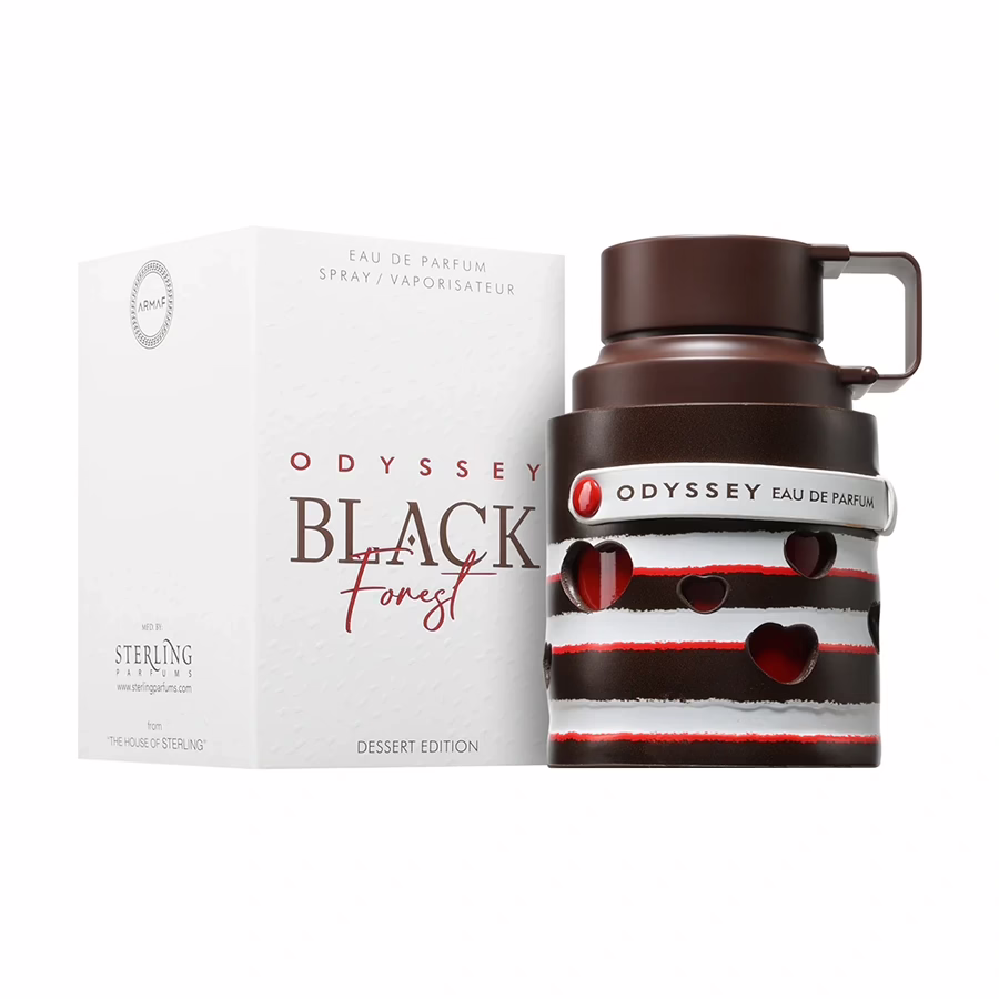 Odyssey Black Forest is een echte gourmand geur. Het doet denken aan zoete desserts en creëert een warme, sensuele geurbeleving waar je gewoon blij van wordt. In dit geval zijn het karamel, kersen, melkachtige noten, kaneel en witte bloemen die het onmiskenbare dessertkarakter van het parfum vanaf het begin onthullen. De combinatie van deze aroma's creëert een karamel-kruidige start met een koffienoot.
