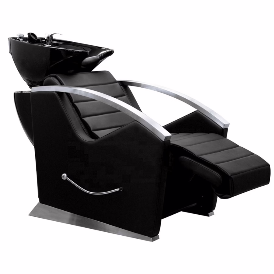 De zwarte kapperswasunit met terugspoelbak is het ideale meubel voor je salon. De voordelen liggen voor de hand: maximaal comfort voor je klanten, een stijlvolle toevoeging aan de sfeer van je salon en een ideale werkhoogte voor jou als professional. De ligstoel combineert functionaliteit, modern design en een echtwellnessgevoel tot een harmonieus geheel.