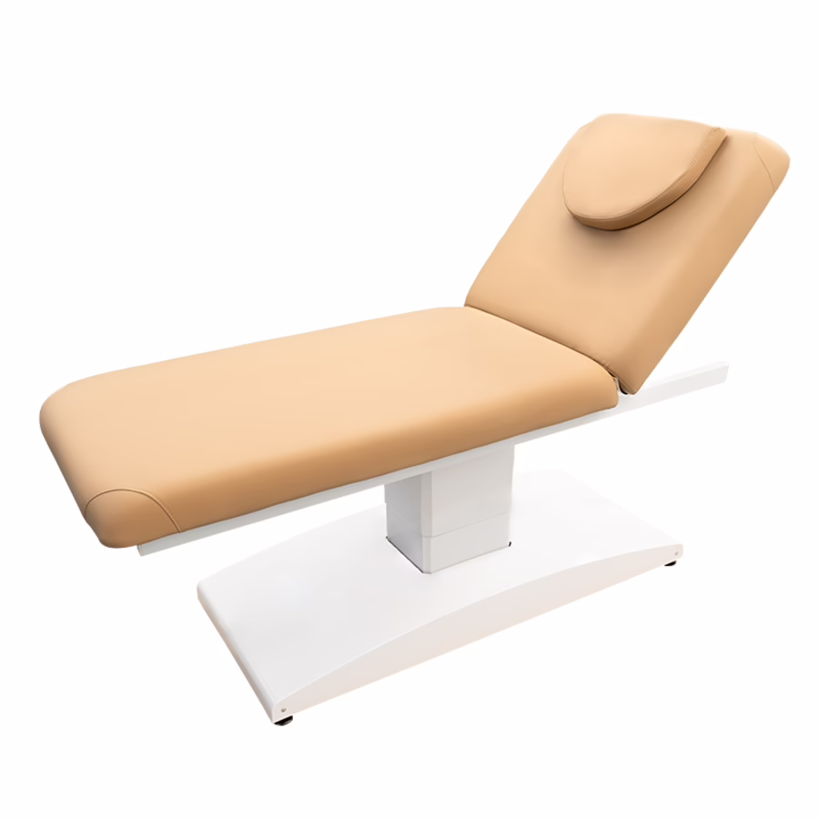 De kleur van het kunstleer is warm beigebruin. Deze hoogwaardige schoonheidstafel geeft je salon een aangename en gezellige sfeer om je goed in te voelen.