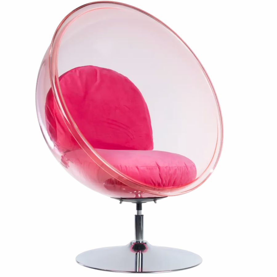 De ijsstoel in roze ziet er niet alleen ultramodern uit - het is ook een unieke oase van rust. Als je hier plaatsneemt, merk je nauwelijks geluiden van buitenaf: stemmen, muziek, enz. komen alleen op een extreem gedempte manier deze kleine comfortzone binnen.